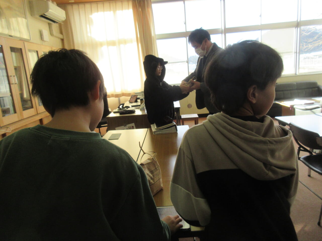 12月22日(月)、5年生が全校児童と学習でお世話になった皆さんや先生方にお米のプレゼントをしました。お米の名前は「う米!」。みなさん、おいしくいただいてください。