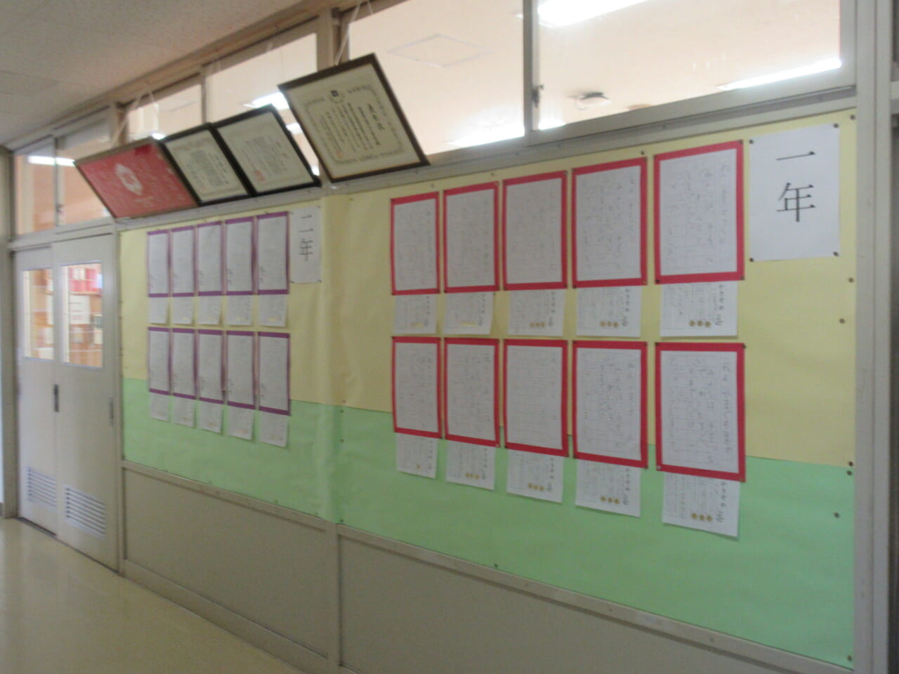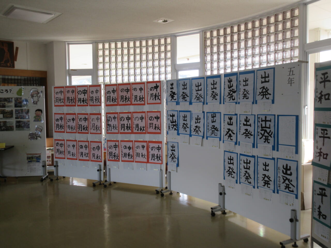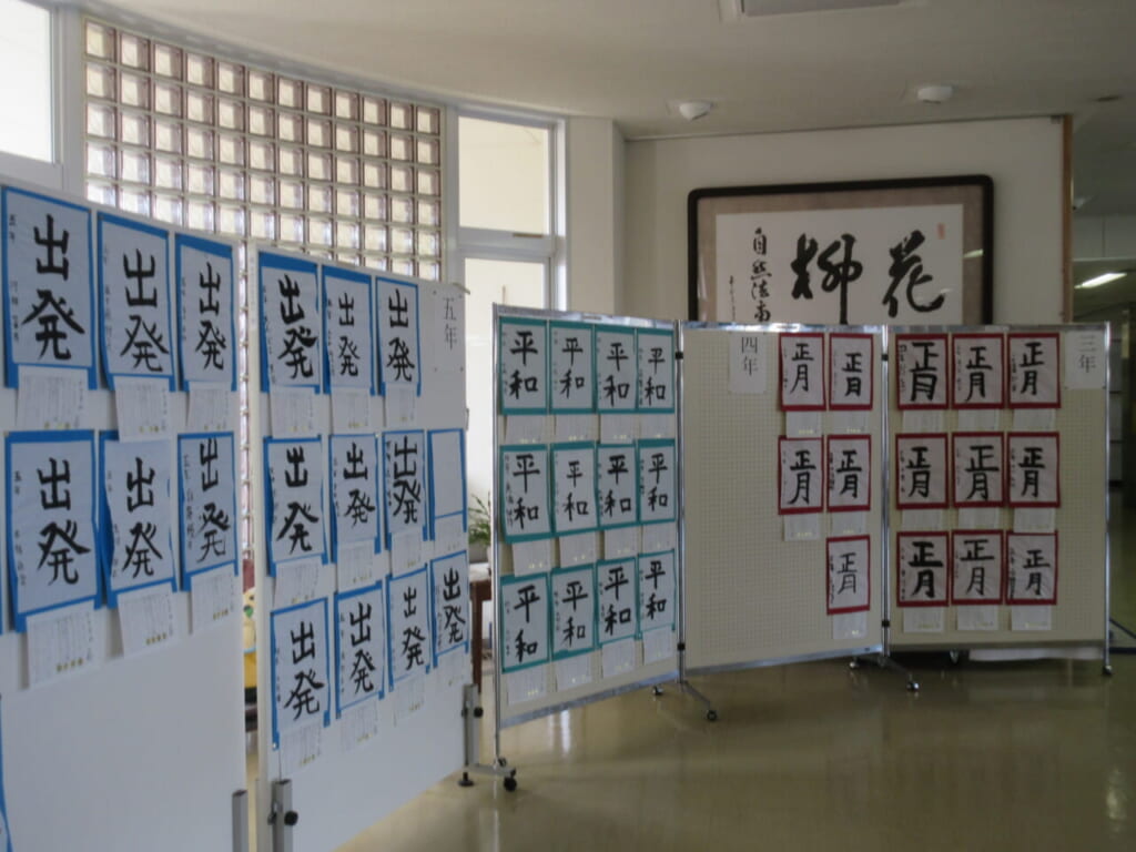 1月下旬より、各学年の課題に取り組んだ書初め展を行っています。昇降口前の展示ホールに、全員の書初めの作品を掲示しています。近くのおいでの際は是非ご覧ください。