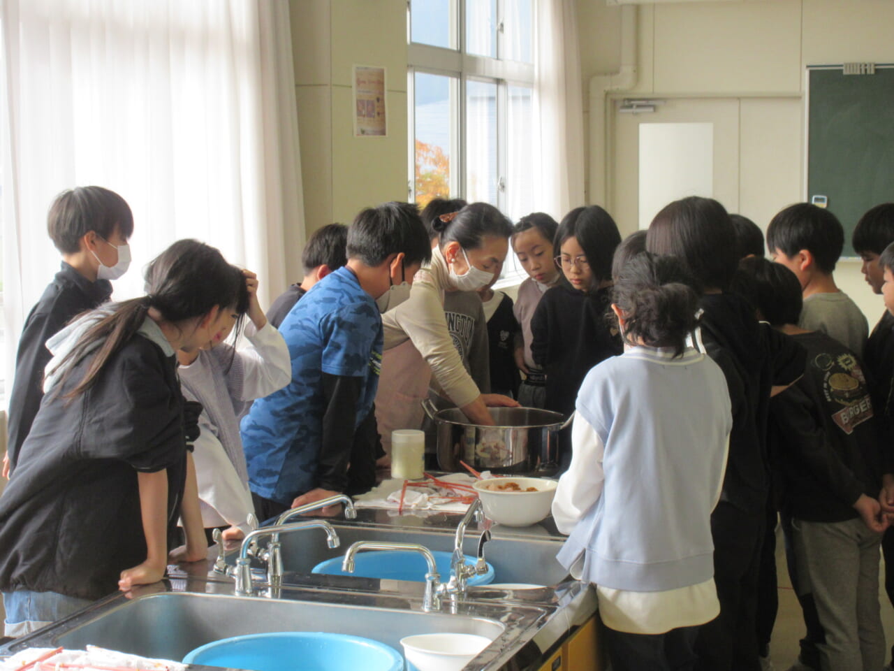 4年生、べにばな染めに挑戦 11月12日(火)、4年生が総合的な学習の時間にべにばな染めを行いました。講師の先生をお呼びして、世界遺産の話や紅花の利活用等についてのお話をお聞きし、その後に、べにばな染めに挑戦しました。鮮やかな赤色の染料から布がピンクに染まる瞬間、子供たちから歓声があがりました。染物の完成が楽しみです。
